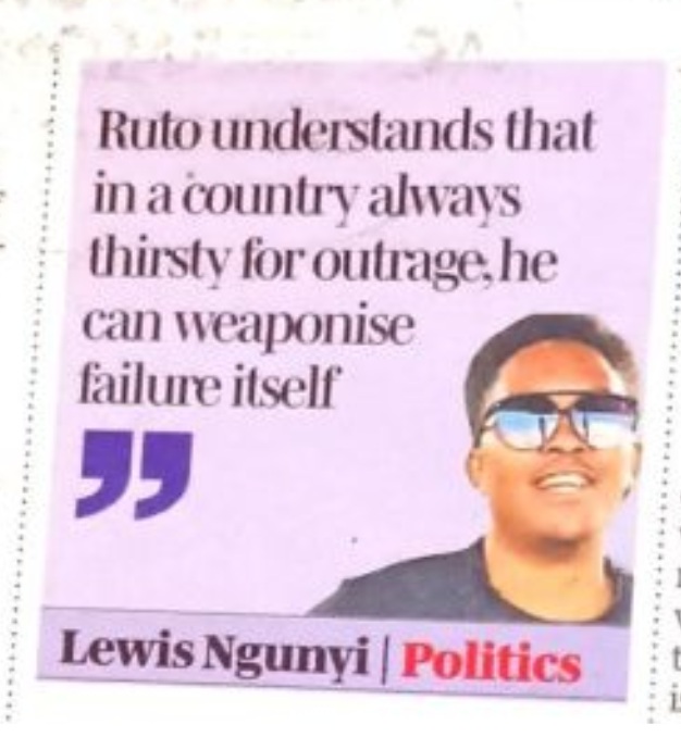 Ruto understands that in a country always thirsty for outrage, he can weaponise failure itself. He no longer needs to inspire love.